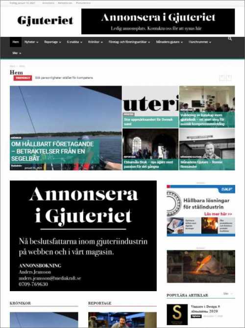 Gjuteriet.se publicerar materialet från den tryckta tidningen. Däremellan uppdateras gjuteriet.se med nytt och unikt extramaterial samt nyhetsuppdateringar.